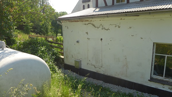 Wieder alleine ging es mit der Küche weiter. Jetzt ist sie endlich komplett entkernt, außer dem Fußboden, da wir die alten Fliesen erhalten wollen. Aber alter Putz, Fensterbretter, Wasser- und Abwasserrohre und Elektrik sind weg und können nun neu aufgebaut werden. Zur Zeit haben wir einen Maurer bei uns, der in dem Stall in dem später der Heizungskessel aufgestellt werden soll, zwei Mauern hochzieht. Zum einen wegen der Statik, 2 Träger sehen aus als ob sie gebrochen wären, zum anderen aber auch damit wir später einen abgetrennten Heizungsraum und ein Pelletlager haben.